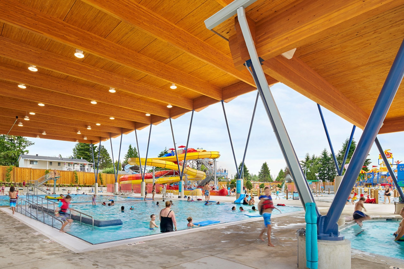 The Aldergrove Credit Union Community Centre brings together an arena, community spaces, aquatics waterpark, and playground into one inclusive, accessible, and sustainable facility. Designed to serve residents of all ages, genders, and cultural backgrounds, the centre features reclaimed materials, energy-efficient systems, and environmentally conscious technologies. By blending community revitalization with environmental stewardship and universal accessibility, the Township of Langley has created a vital hub that enhances the social and physical well-being of its growing population.